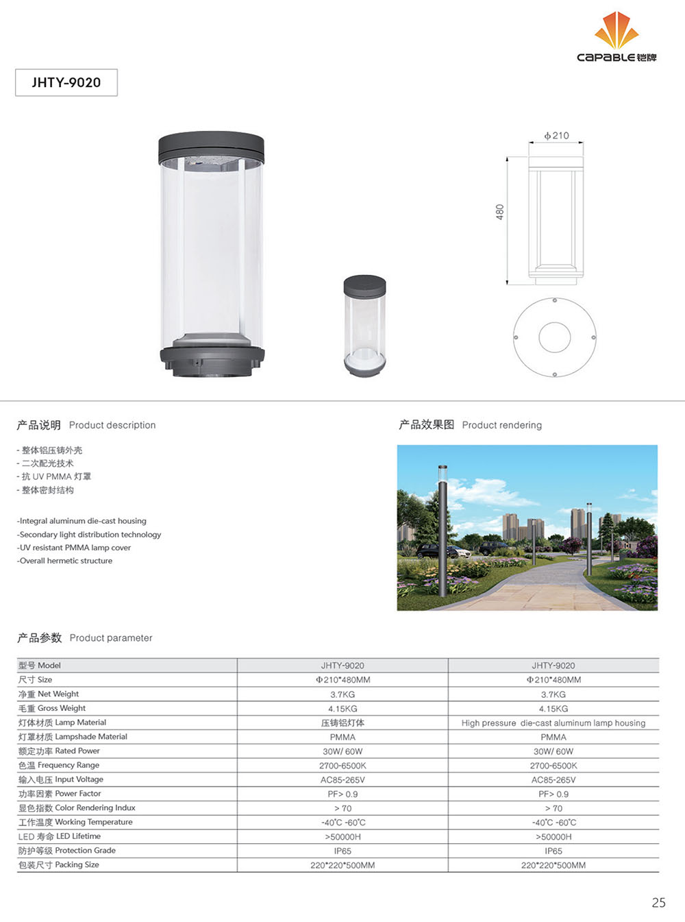 | Packing Size | 220*220*500MM |