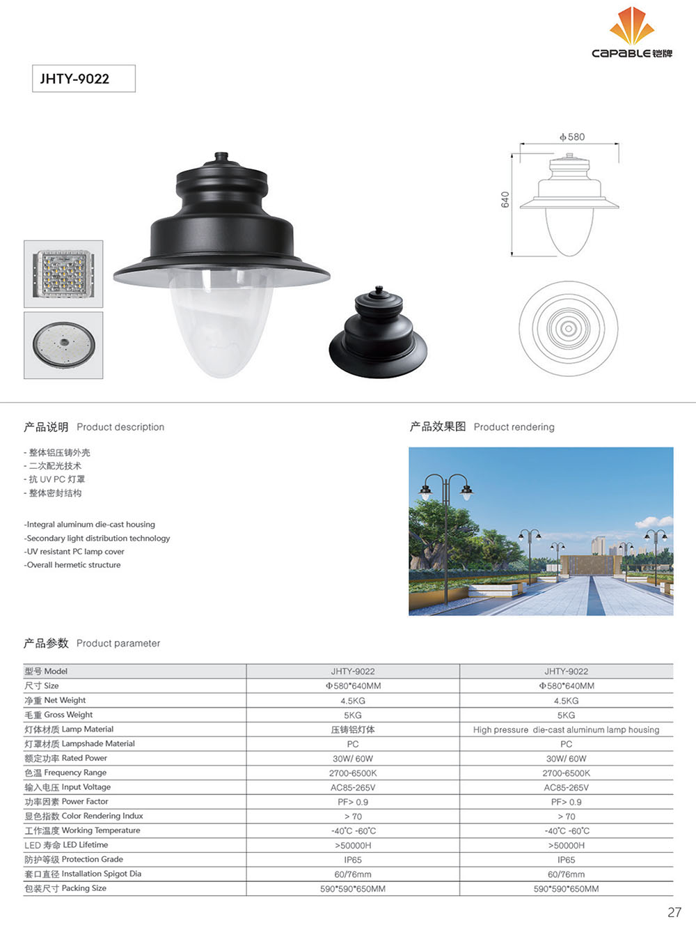 | Lamp Material | High pressure die-cast aluminum lamp housing |